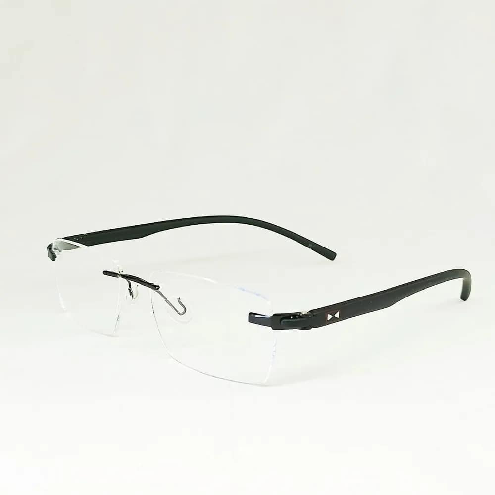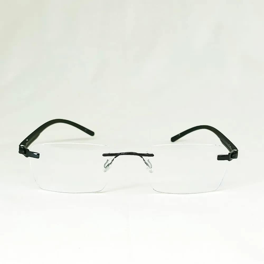 Rimless Eyeglasses with Black Metal bridge and Black Temple Frame (Pack of 1) including Cover